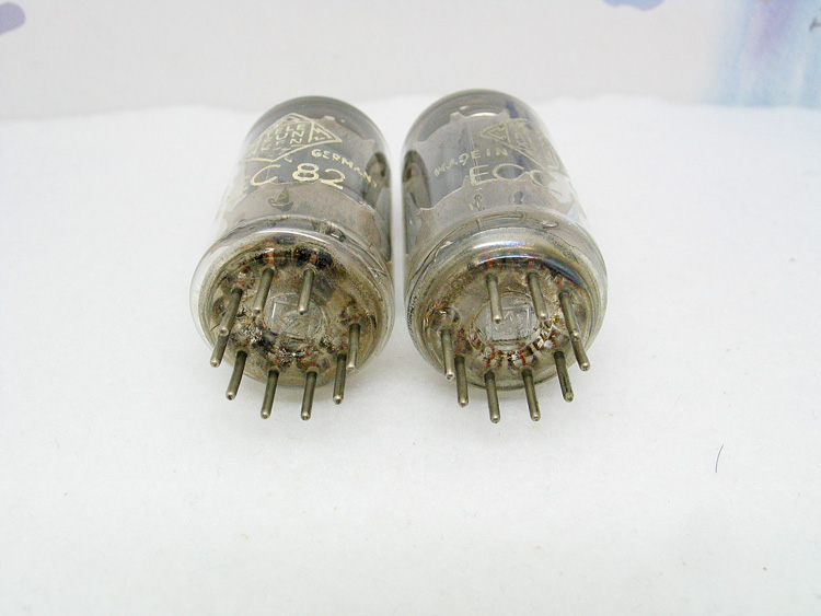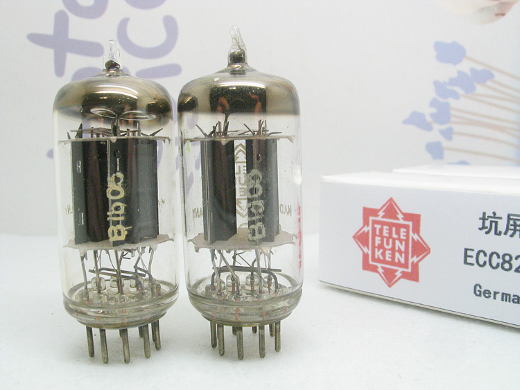 57年德国德律风根坑屏T云母ECC82/12AU7一对,德律风根柏林工厂生产,早期五位编码:Blb05 Bld00 管身粉字基本完整,难得一见好成色,全新测值,测试配对极佳,实物如图。德律风根ECC82是世界上公认的优质12AU7管。坑屏版其声音中频迷人,是许多烧友非常喜欢的一类管。