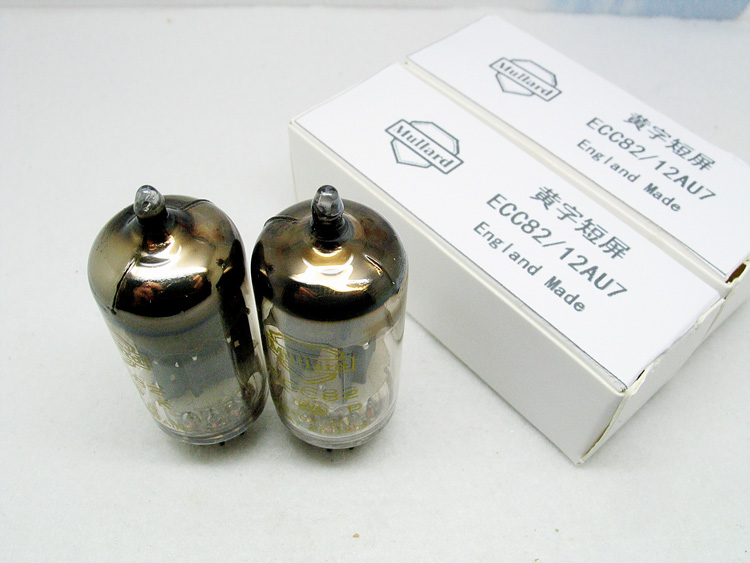 60年代大盾黄字短屏圆环ECC82/12AU7一对,英国布莱克本原厂生产,暗码:B4J4 B4C5. 有使用痕迹但测值配对都好,实物如图。此管声音比普通白字短屏大盾圆环醇和,与大盾长屏方环极为接近,并不比大盾长屏圆环逊色多少,性价比极高,是烧友们非常喜欢的一类管。