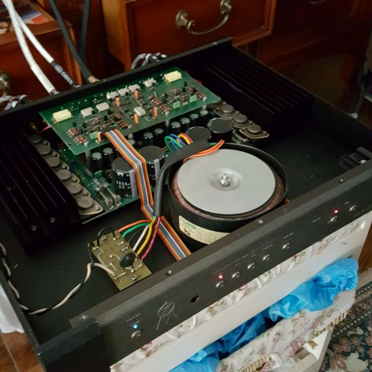 功放也是之前论坛收的,现升级亏本便宜出,大电流设计,8欧150w 4欧300w 成色还行,顶盖有些划痕,85新,,带原装摇控和原装电源线说明书 ,当年轰动一时的名机,很多人用来推丹拿的s1.4, 声音大气磅砣动态灵厉解析好,低频拳拳到肉下替深阔,