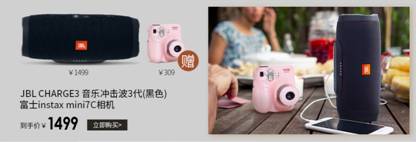 郊游全能组合—JBL CHARGE3黑+instax mini7c可爱粉