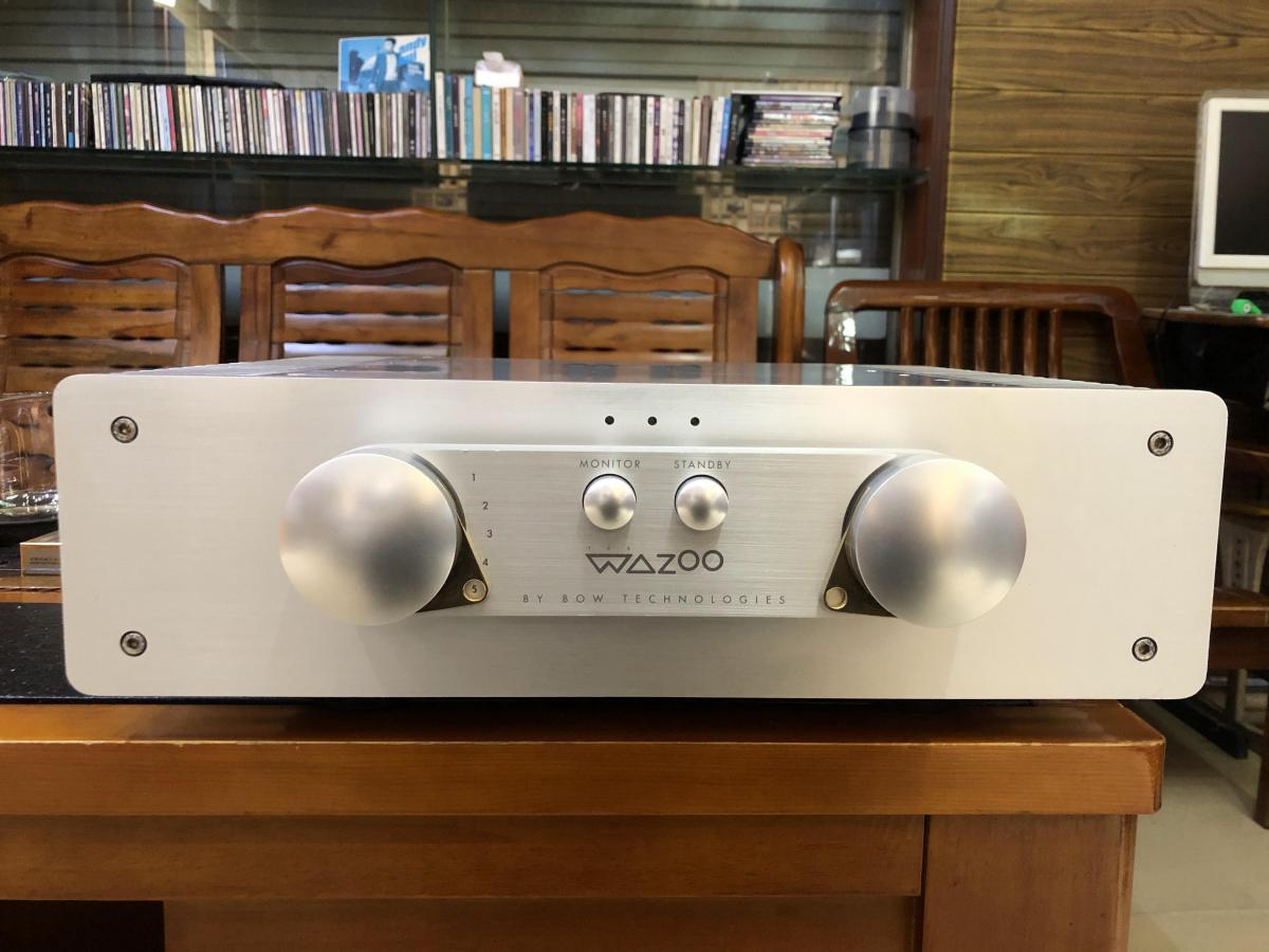 简介:神弓BOW WAZOO 合并功放 丹麦WAZOO/神弓 甲类功放,原装100V,贵丰生产,甲类50瓦,平衡输入。厚实的全铝本色躯体加上两边的散热片,显得很简练,最大的精妙之处是正面的四个圆形按钮。中间两个为电源与待机按钮,左右两边分别是输入选择档与音量调节,金色的三角设计非常华丽。而神弓BOW这个品牌的创始人CHRISTENSEN,就是大名鼎鼎的PRIMARE翩美的创办者,也是音响界出名的优秀设计者。WAZOO合并功放获得过许多的奖项,包括《Stereophile》A级榜、日本《立体声》杂志 年